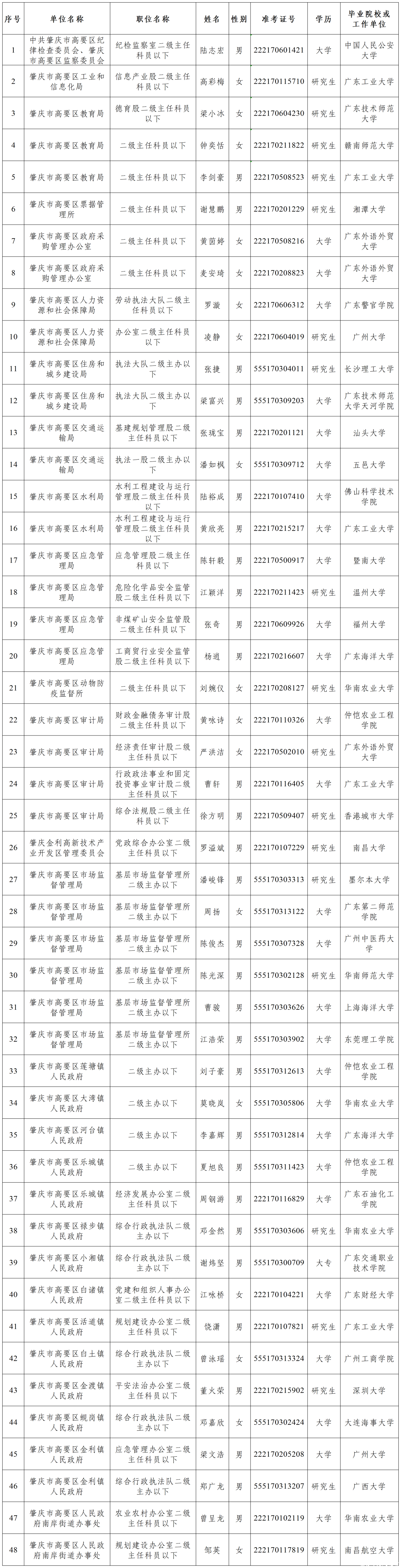 广东省2025年考试录用公务员肇庆市高要区拟录用人员名单(第一批)